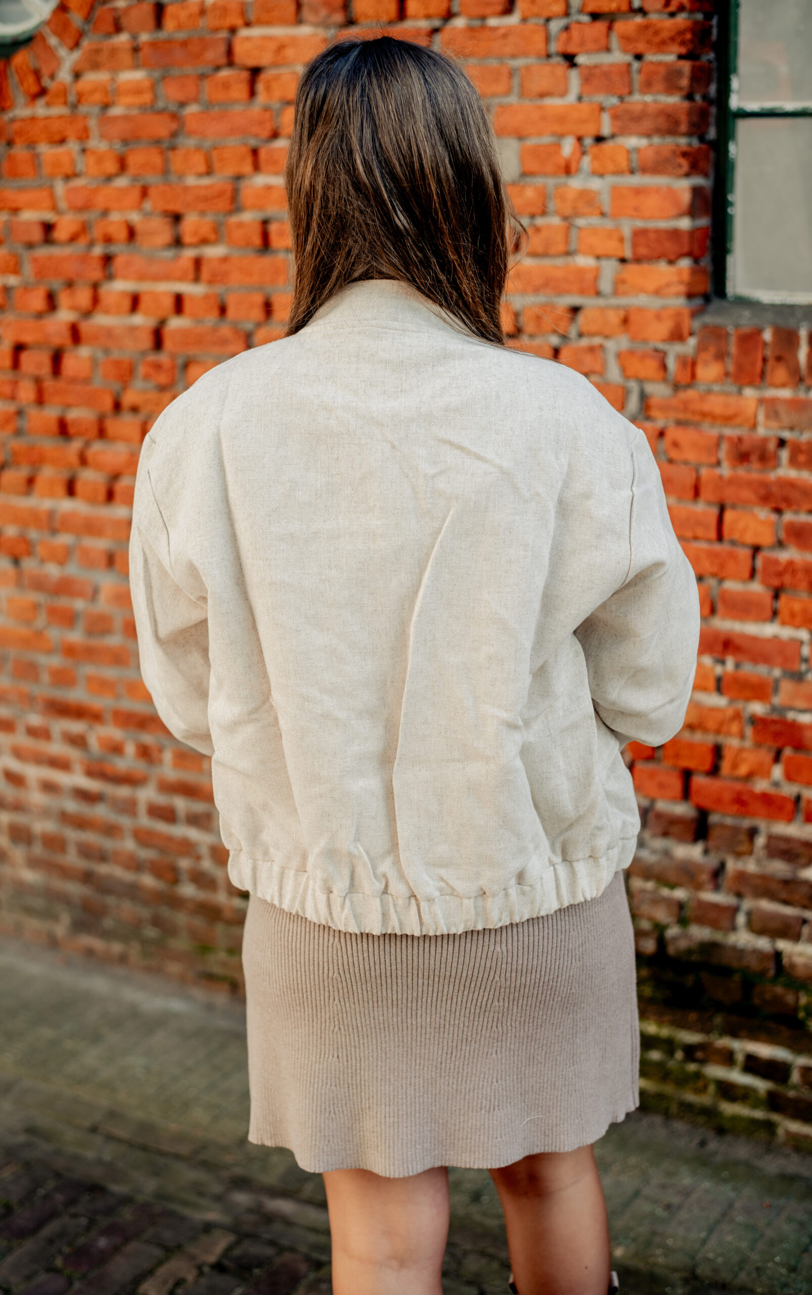 Dit stijlvolle bomberjack is perfect als tussenjas voor de dagen waarop het net te warm is voor een dikke jas. Het jack heeft een comfortabele pasvorm en sluit met knopen, waardoor het een moderne en casual uitstraling krijgt. Makkelijk te combineren met verschillende outfits voor een trendy look.