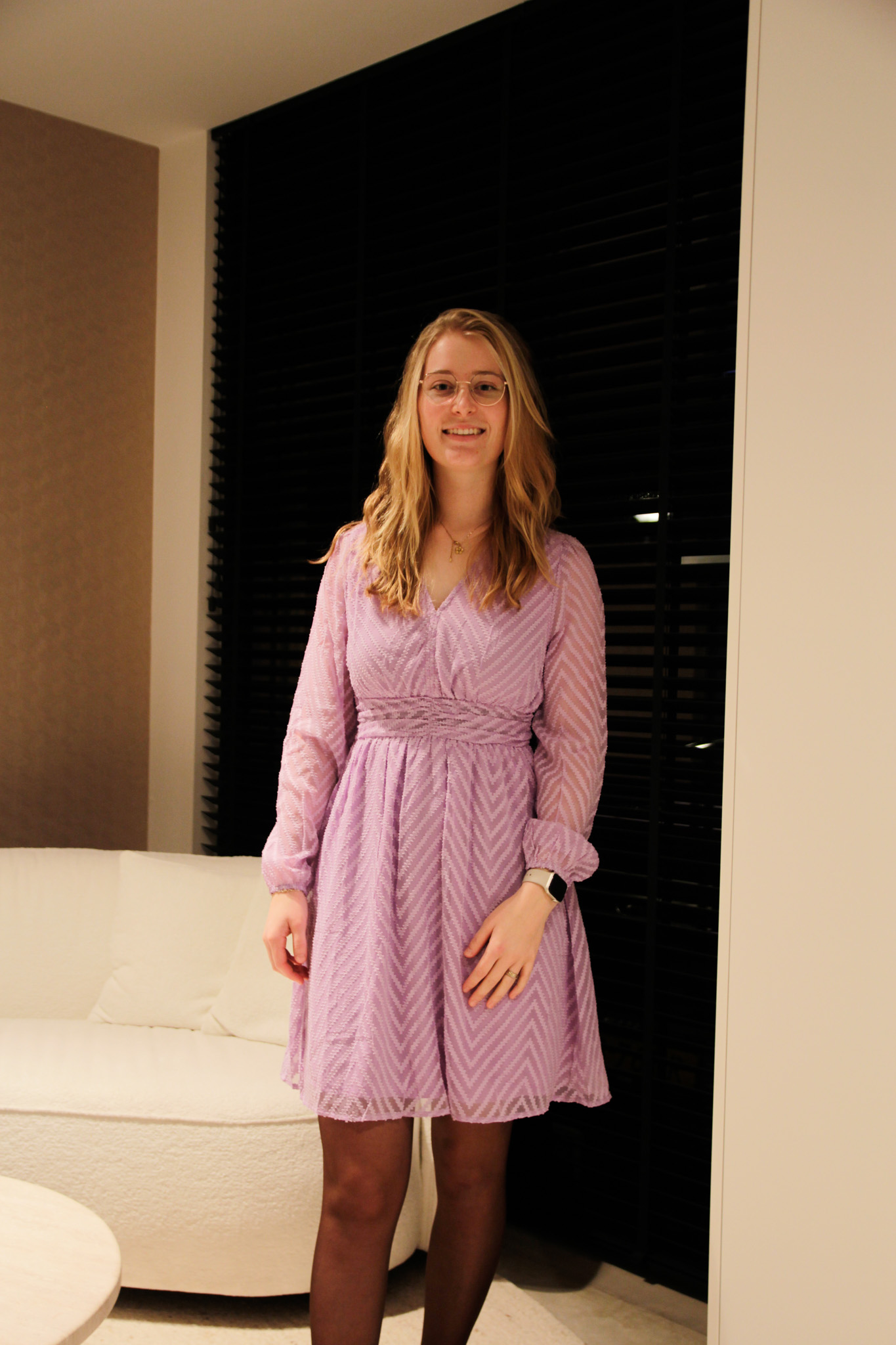 Jurk Emma in de kleur lila heeft een fijne, comfortabele pasvorm en een elegante uitstraling. De jurk is gemaakt van 100% viscose en voelt licht en luchtig aan op de huid. Dankzij de goede stofkwaliteit schijnt de jurk niet door. De lengte van maat S/M is 95 cm.