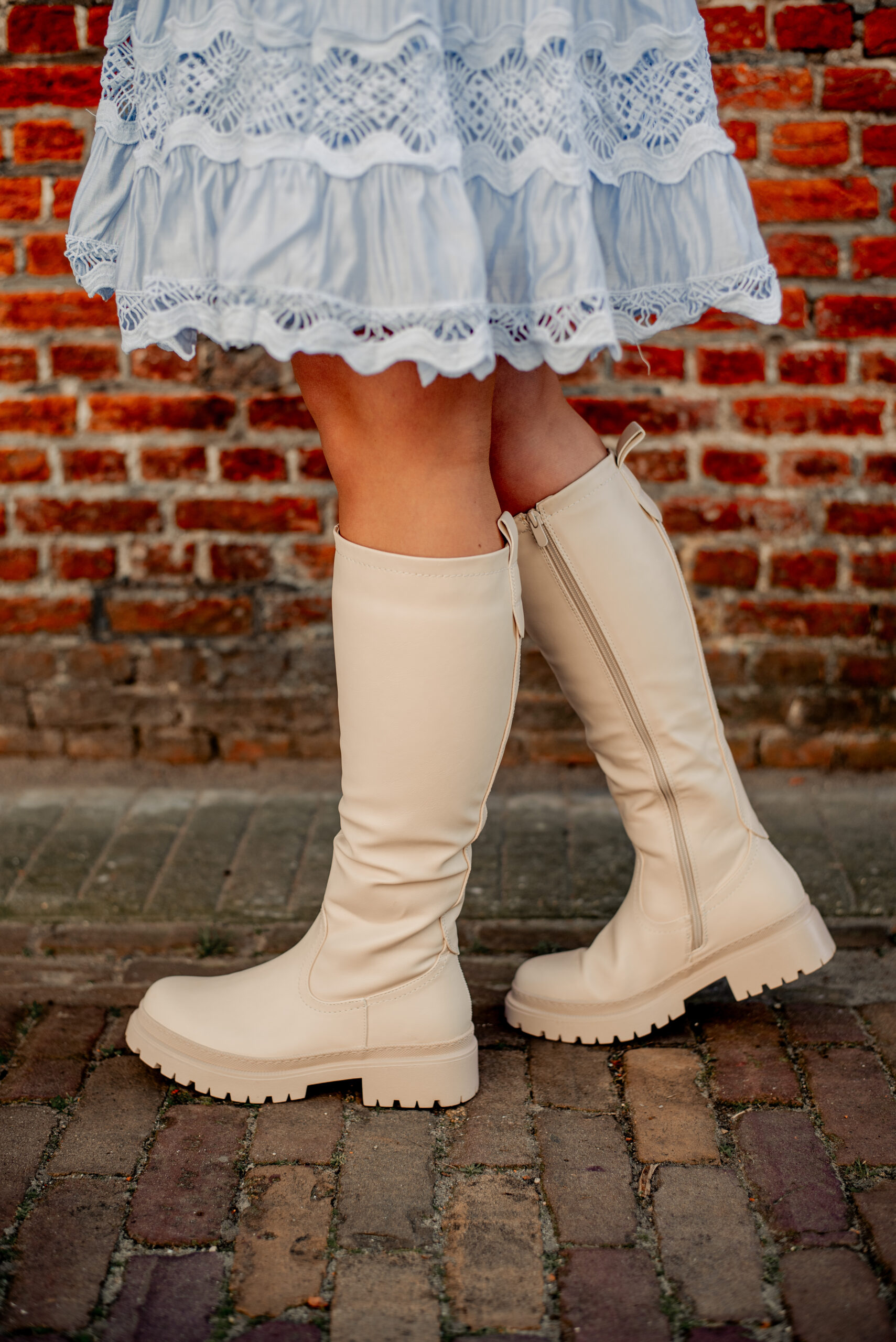 Deze stijlvolle beige laarzen zijn een perfecte aanvulling op elke garderobe. Dankzij de neutrale kleur zijn ze eenvoudig te combineren met zowel casual als geklede outfits. De laarzen vallen op maat en zijn verkrijgbaar in maat 36 t/m 41. Twijfel je tussen twee maten? Dan adviseren we om een maat groter te nemen voor extra comfort.