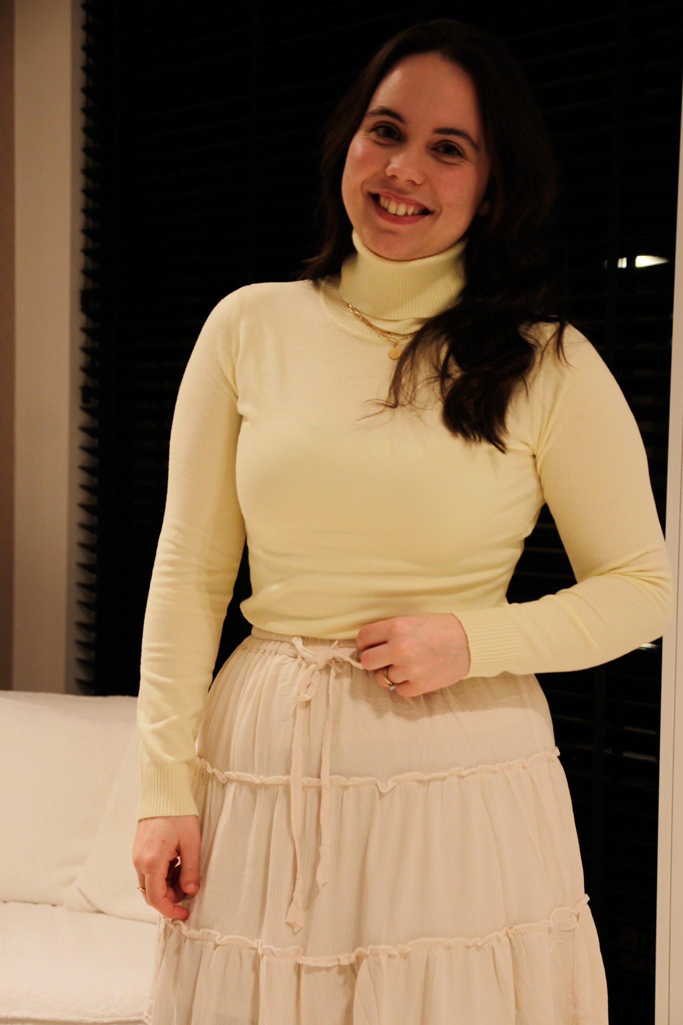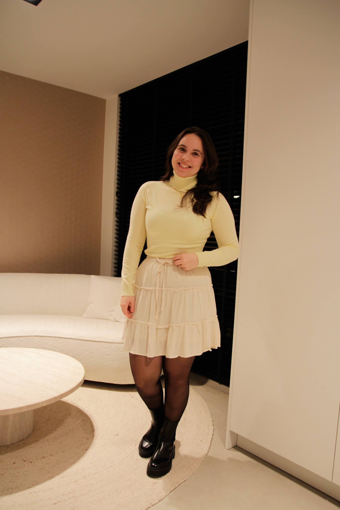 De rok heeft een lengte van 48 cm in maat S/M en is gemaakt van 100% viscose, wat zorgt voor een zachte en soepele valling. Verkrijgbaar in de tijdloze kleuren choco beige en off-white, waardoor je hem eindeloos kunt combineren met verschillende truien of shirts.