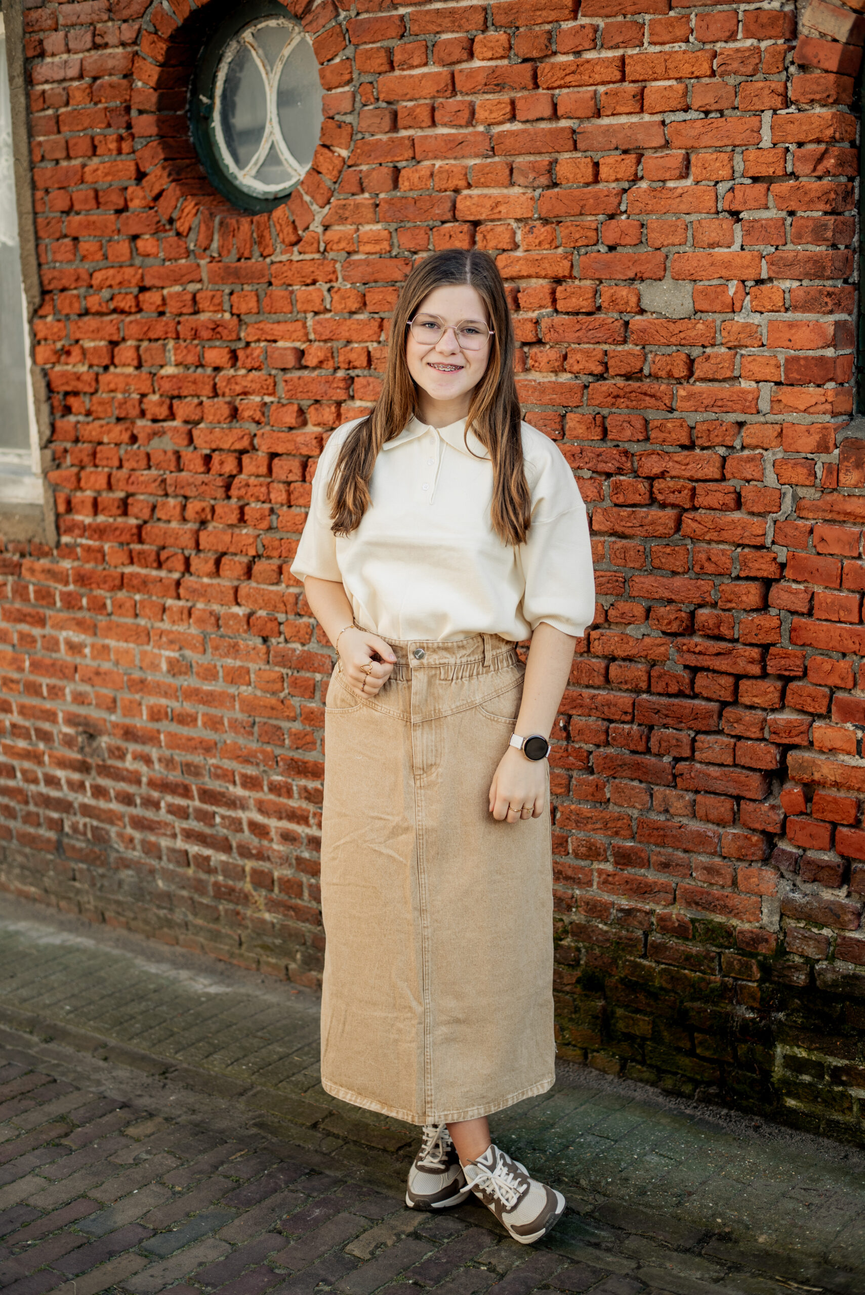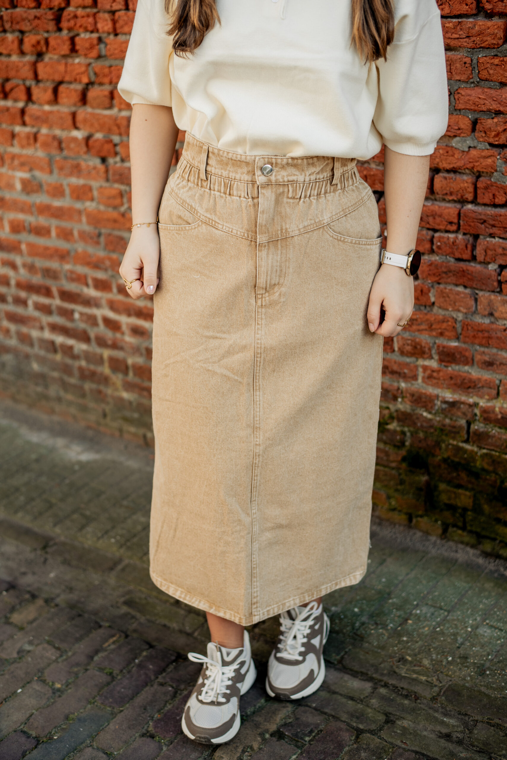 Comfortabele spijkerrok met lichte stretch voor een fijne pasvorm. Verkrijgbaar in twee maten.