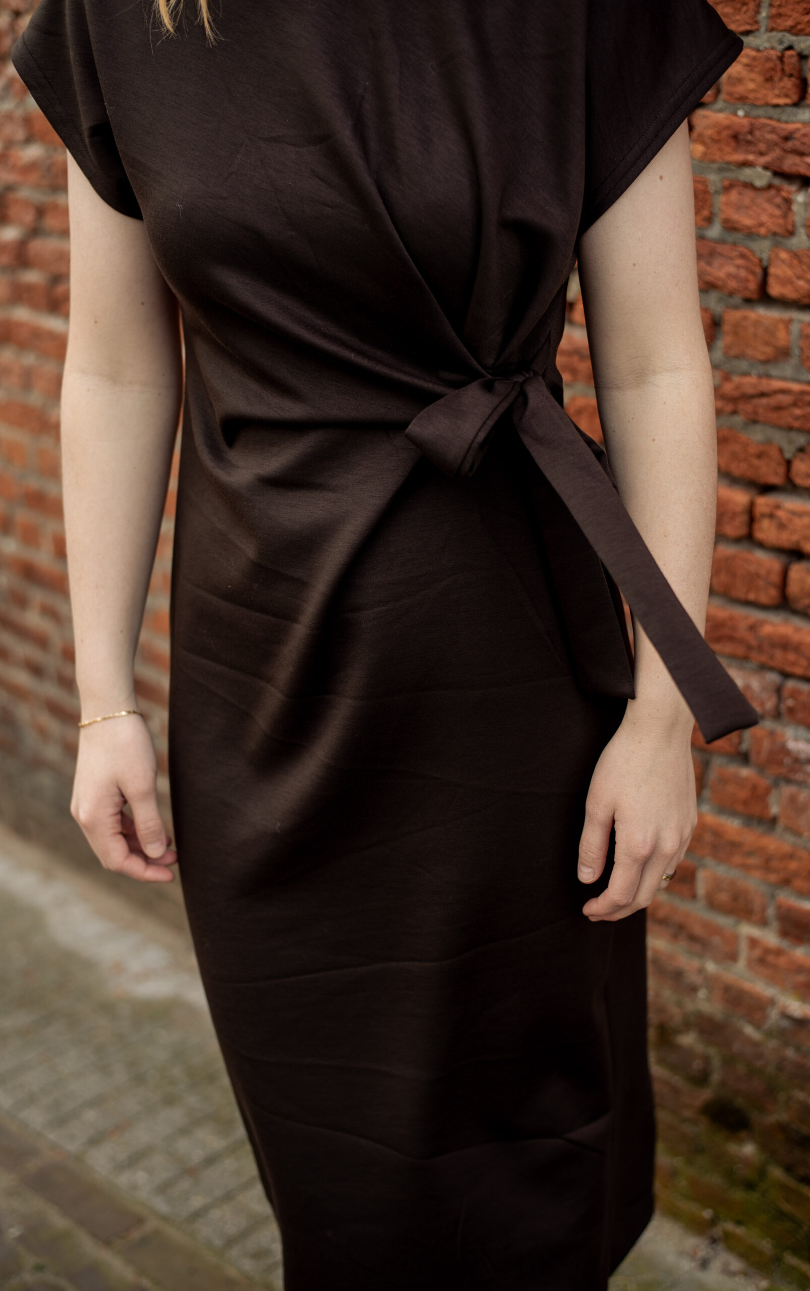 Jurk met strik aan de voorkant.