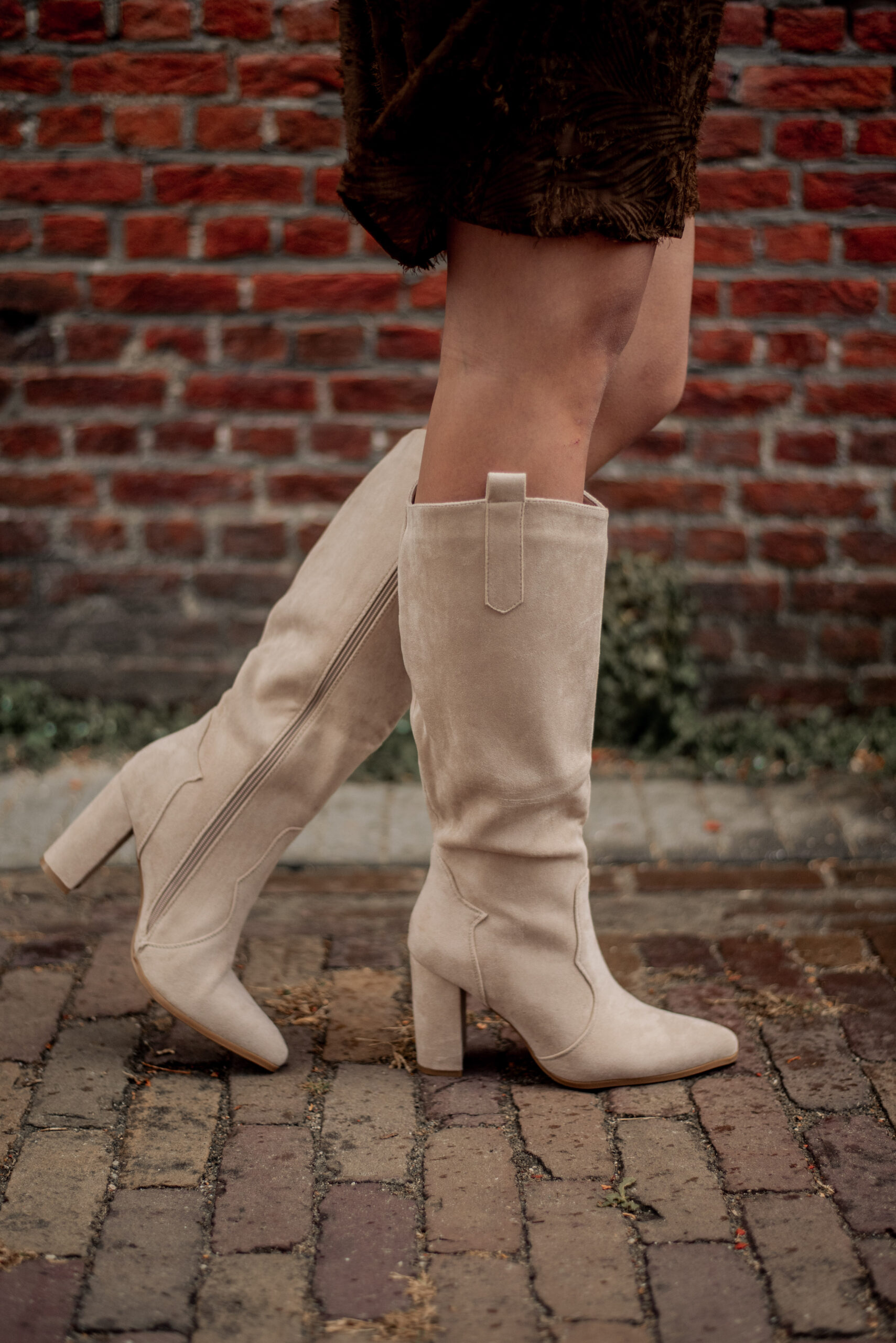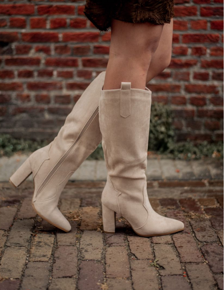 Stijlvolle suède haklaarzen die perfect aansluiten bij elke outfit. De zachte suède afwerking geeft een luxe uitstraling, terwijl de stevige hak zorgt voor een elegante look én comfortabel draaggemak. Deze laarzen vallen op maat, dus je kunt gerust je gebruikelijke schoenmaat bestellen.