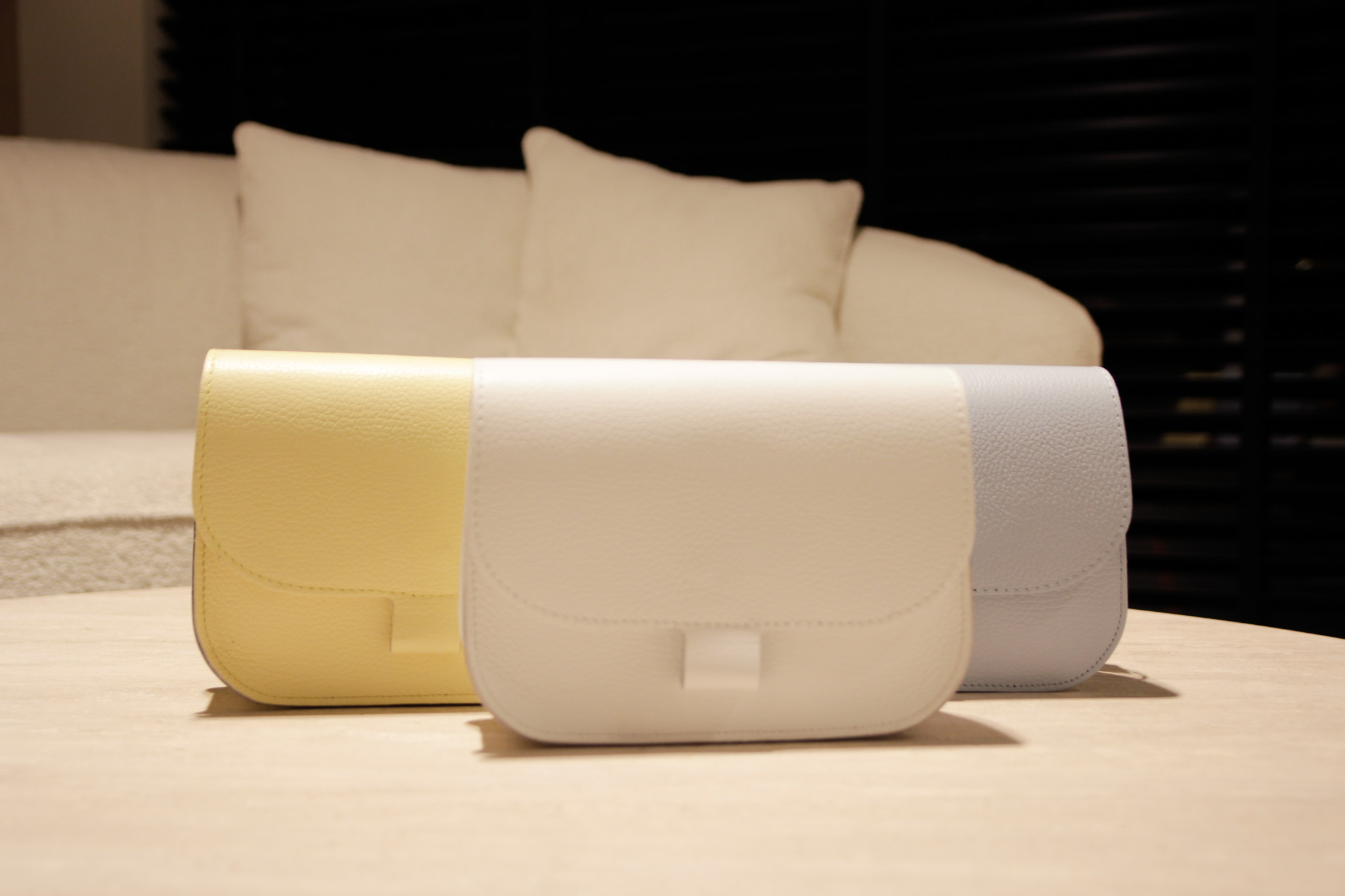 Beschikbaar in de kleuren wit, lichtblauw, beige, geel en goud.