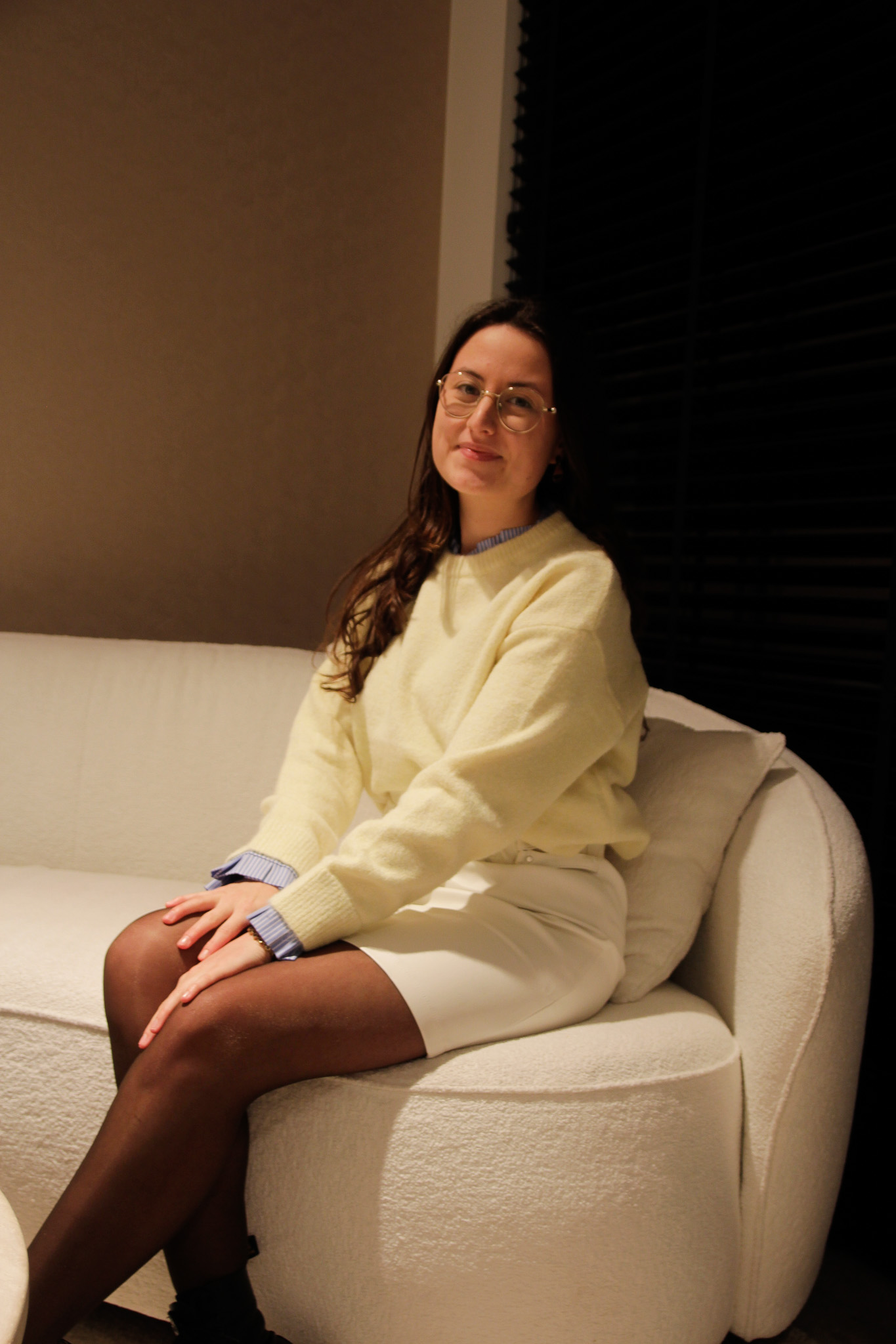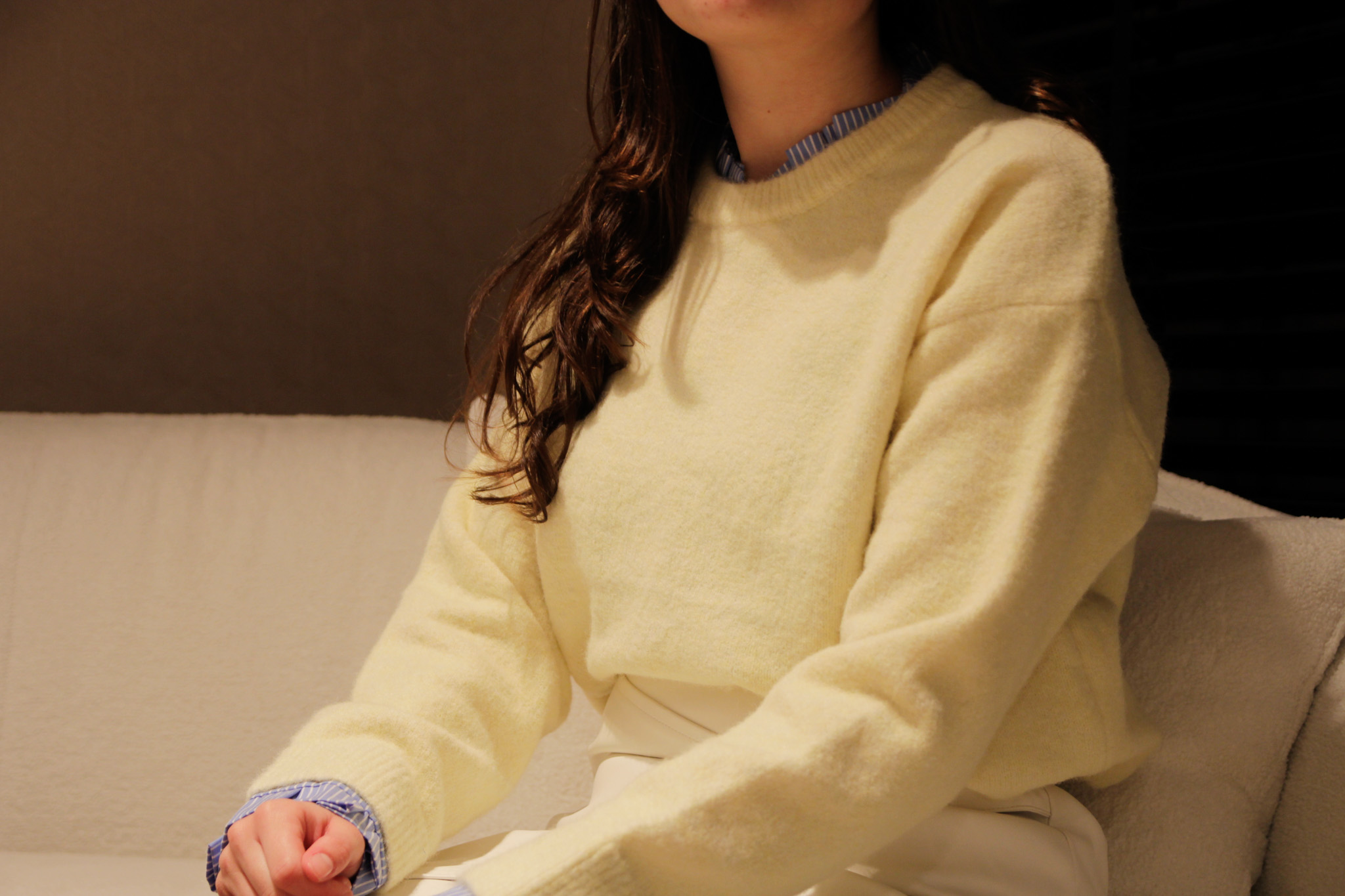 Stijlvol en uniek: deze trui van Kilky combineert comfort met elegante details. Het blouse-detail bij de kraag en mouwen in blauw met fijne witte streepjes geeft een speelse en chique touch.