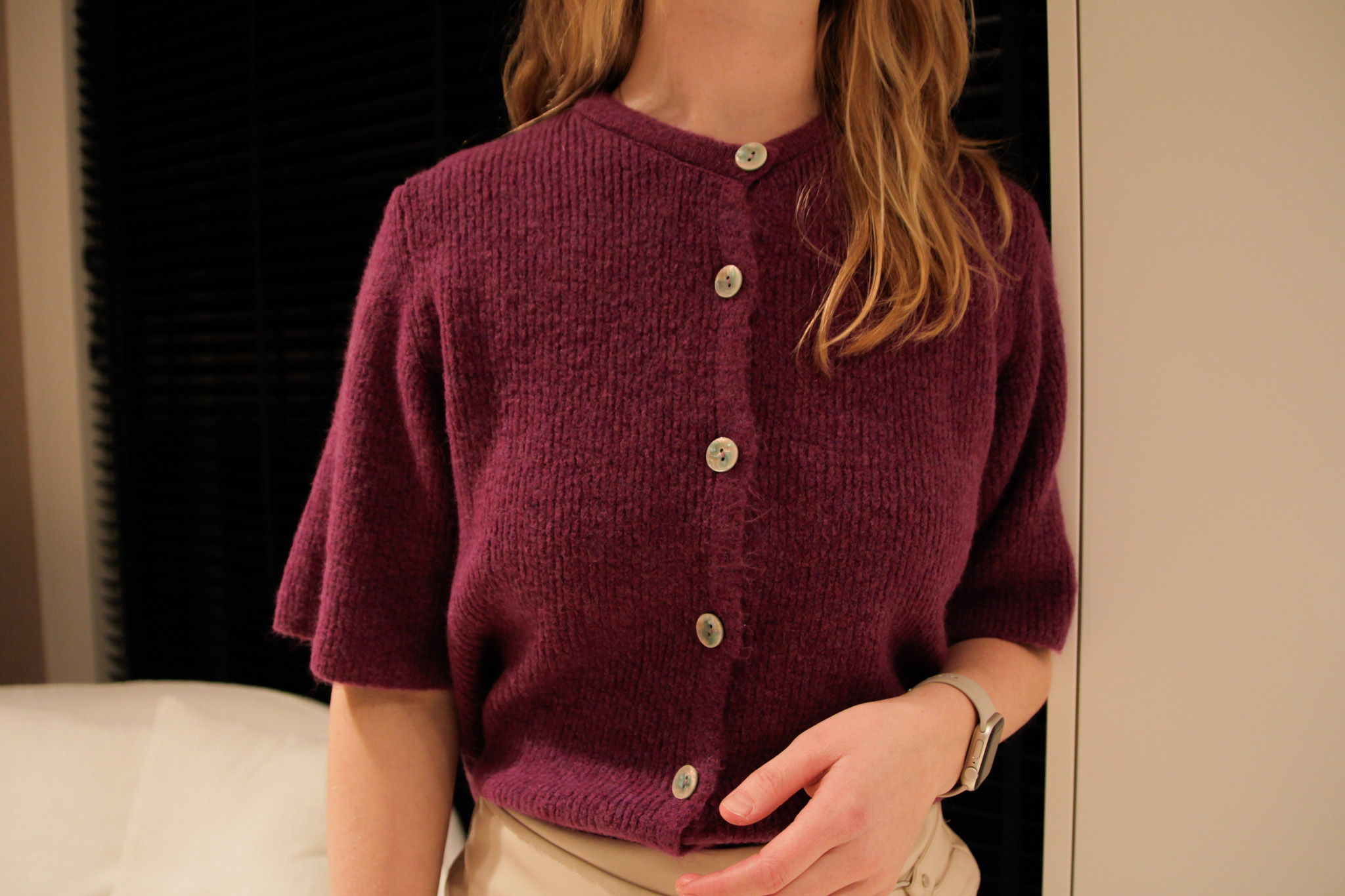 Vest Sara is een stijlvolle en speelse toevoeging aan je garderobe. De korte mouwen maken deze trui perfect voor het voorjaar, terwijl de knopen een leuk en vrouwelijk detail toevoegen. De frisse magenta kleur zorgt ervoor dat je outfit direct opvalt.