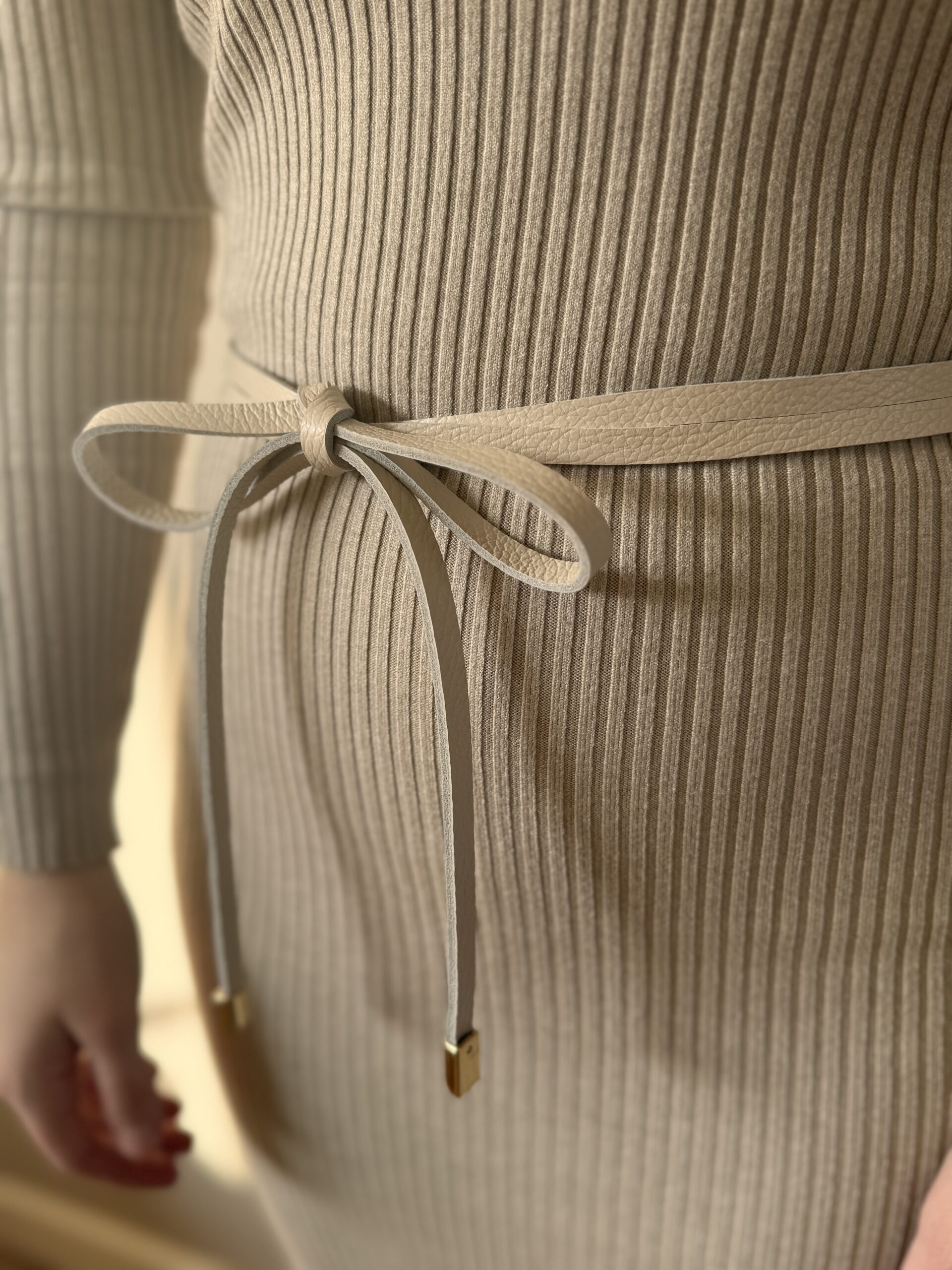 Beige wikkelriem. Knoop of strik de riem naar maat!